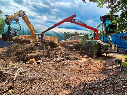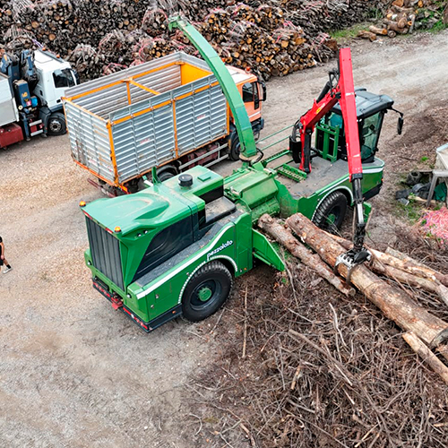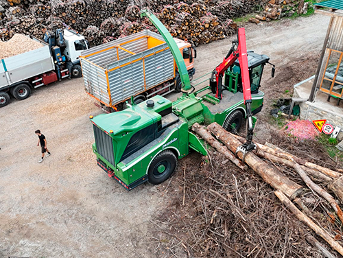Produzione di cippato nel vostro sito con Cippatrice ALLROAD Pezzolato, fino a 300 m3/h e lavorazione di tronchi fino a 1 metro di diametro.