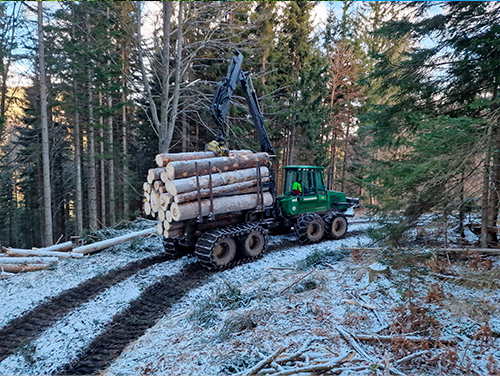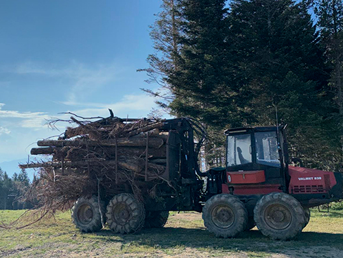 Movimentazione di legname con forwarder, carro forestale, verricelli e teleferiche forestali.